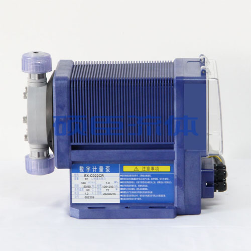 數字計量泵的優點:? 高調節比,高度集成 使用BLDC電機閉環控制(非步進電機),高度集成工業電子控制,可實現精確控制與反饋,并具有很高的調節比。 ? 抗氣蝕及高精度 可獨立精確控制吸入 / 排出速度,可輸送高粘度及易分解液體,確保了化學投藥的高重復性(±1%)。 ? 高效節能型設計 通過使用斜齒輪和輔助彈簧的精巧設計,降低功耗;同時免除了油浴需求,延長了泵的使用時間。 ? 自動控制 EX可自動按照模擬、脈沖、批量或間隔批量等操作設定運作。 ? 寬電壓運行 EX系列使用寬電源電壓(100-240VAC),可在所有國家 / 地區使用。 ? 標配豐富的控制信號接口 標配脈沖信號,電流信號接收及電流信號輸出,STOP,急停,報警及RS485總線等接口,滿足各種復雜工況。 ? 人性化設計 3.5寸LCD彩色高清屏,簡單明了。 ? 無粘合劑的隔膜 采用“全 PTFE”復合隔膜,提高耐化學腐蝕能力。 ? LED 提示燈 控制單元上的大型 LED 提示燈可清楚顯示各種運行狀態和報警狀況。 ? 多種泵頭材質可選 過流端材質可選,可適應不同液體,外表采用高強度復合材料,優良的結構設計,進一步提高耐化學腐蝕能力。 ? 超壓保護功能 輸出壓力超過泵運行壓力,計量泵可自動停止運行并報警,避免了計量泵因憋壓燒毀。 ? 具有 IP65防護等級